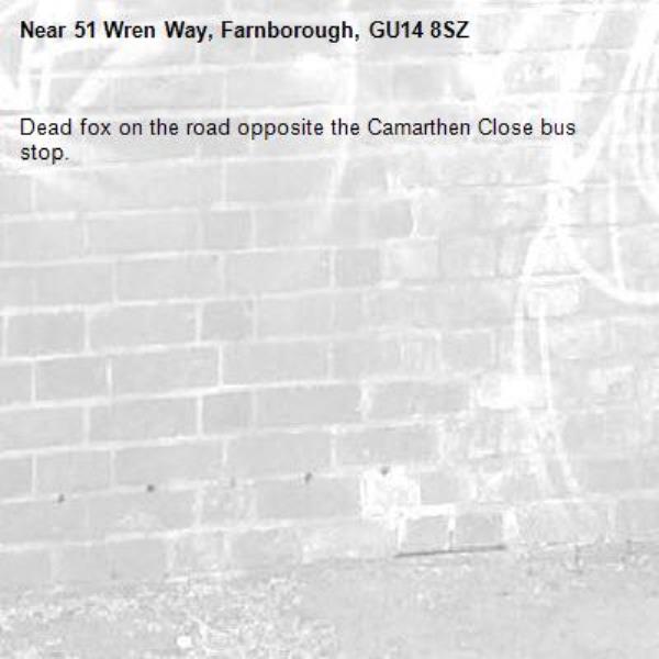Dead fox on the road opposite the Camarthen Close bus stop.