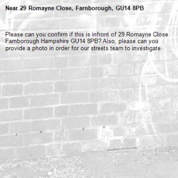Near 29 Romayne Close, Farnborough, GU14 8PB