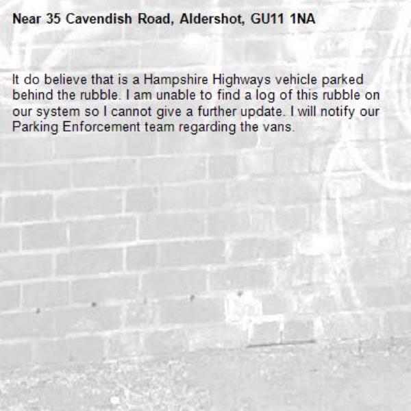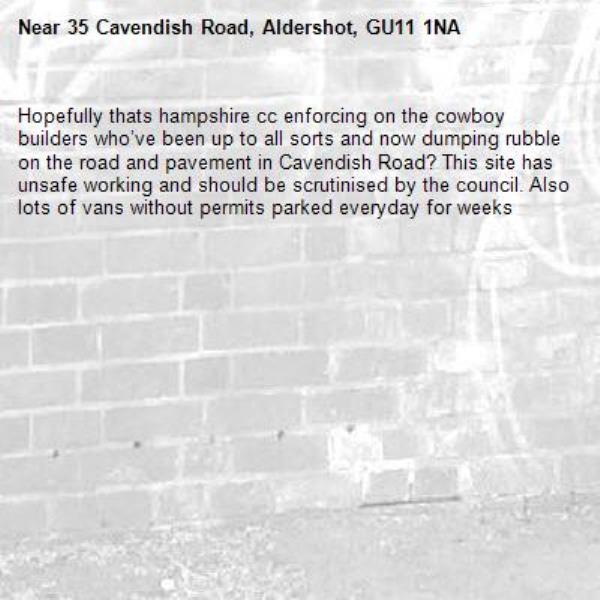 Hopefully thats hampshire cc enforcing on the cowboy builders who’ve been up to all sorts and now dumping rubble on the road and pavement in Cavendish Road? This site has unsafe working and should be scrutinised by the council. Also lots of vans without permits parked everyday for weeks