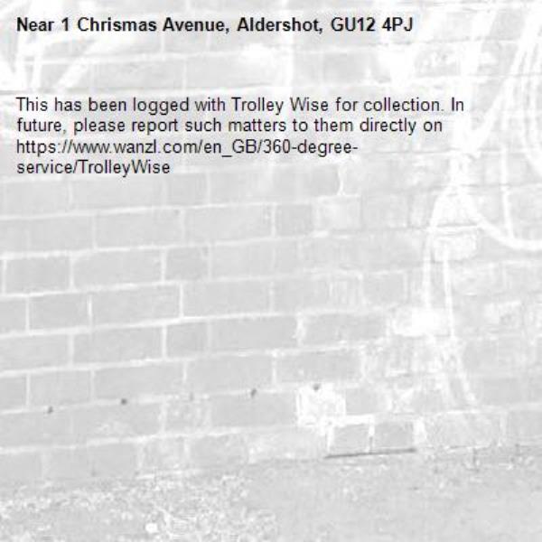 Tesco trolley abandoned in the carpark in Christmas Avenue near ash road end