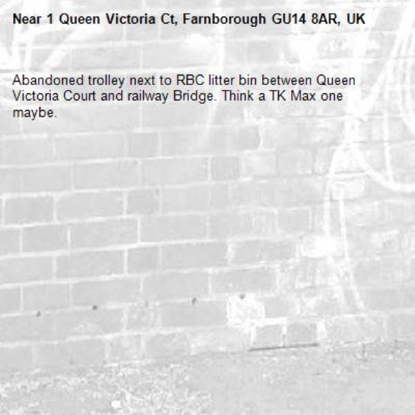 Abandoned trolley next to RBC litter bin between Queen Victoria Court and railway Bridge. Think a TK Max one maybe.