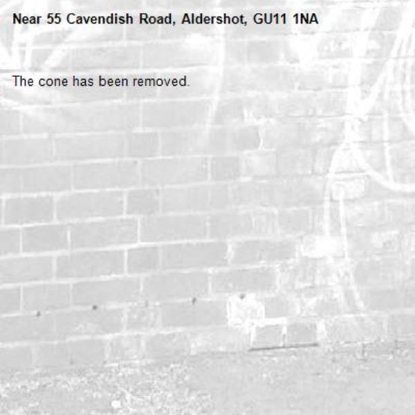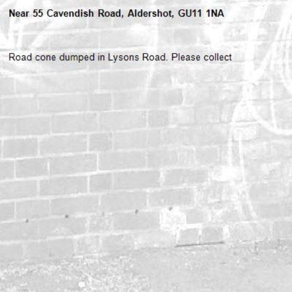 Road cone dumped in Lysons Road. Please collect