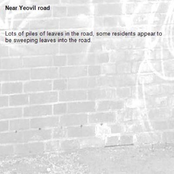 Lots of piles of leaves in the road, some residents appear to be sweeping leaves into the road.